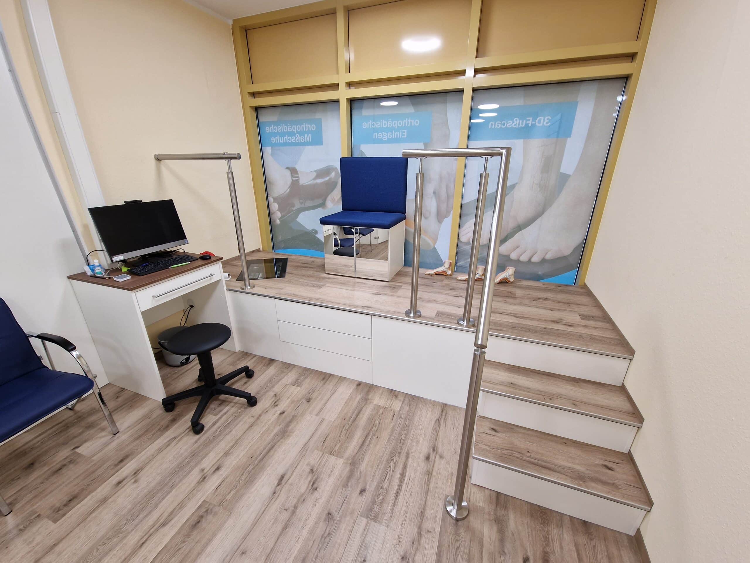 Unsere Kollegen der Orthopädischen Schuhwerkstatt sind für Ihre Fußgesundheit da. Dafür messen sie mittels einer digitalen Fußdruckmessung, welche Druckbelastungen wo auf Ihrer Fußsohle auftreten und erstellen gleichzeitig eine Ganganalyse. Am Bildschirm können Sie dann selbst sehen, wie es um Ihre Fußgesundheit steht und nachvollziehen, wie eventuelle Beschwerden mit orthopädischen Einlagen oder Schuhen behandelt werden können. Vereinbaren Sie gern einen Termin.